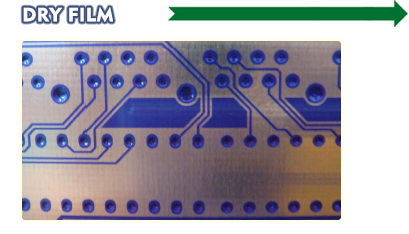 Photoresist (dry film)=>Exposure=>Development=>Etching |